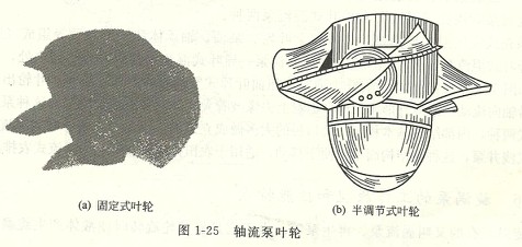 軸流泵葉輪一般由2-6片彎曲葉片組成,形狀和電風(fēng)扇葉片相似,有扭曲,外形如圖1-25所示。葉片的結(jié)構(gòu)有固定的和螺旋角可以調(diào)節(jié)的兩種??烧{(diào)節(jié)葉片又有半調(diào)節(jié)式和全調(diào)節(jié)式的兩種。半調(diào)節(jié)式的葉片是可拆裝的,改變角度需把葉片松開用手工調(diào)節(jié);全調(diào)節(jié)式的是通過一套專門的隨動機(jī)構(gòu)自動改變?nèi)~片的角度。大型軸流泵的葉片大多為全調(diào)節(jié)式的。