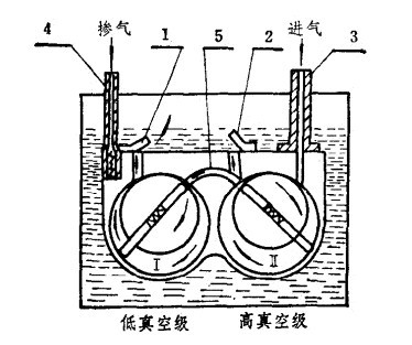 1.低真空級排氣閥2.高真空級排氣閥3.進(jìn)氣管4.摻氣閥5.中間通道