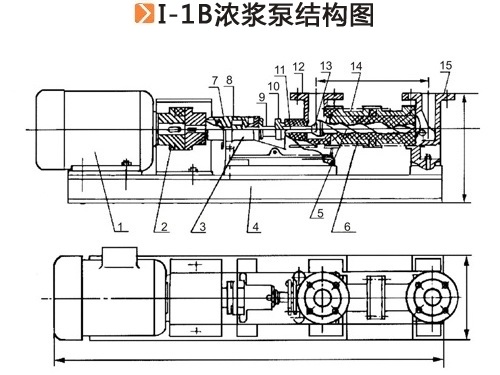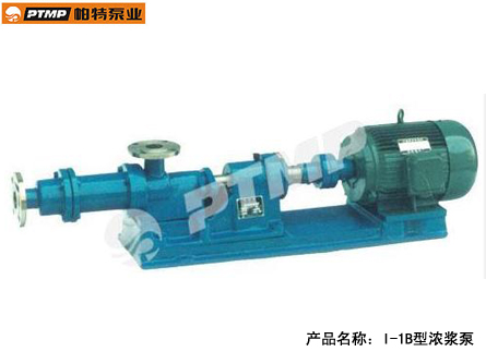 I-1B型濃漿泵是單螺桿式容積回轉泵,該泵利用偏心單螺旋的螺桿在雙螺旋襯套內的轉動,使?jié)鉂{液沿螺旋槽由吸入推移排出口,實現(xiàn)泵的輸送功能。