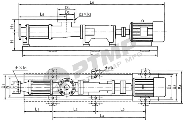 G型污泥單螺桿泵安裝尺寸圖: