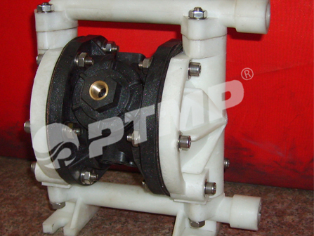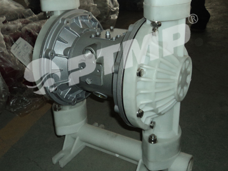 當壓縮空氣通過配氣閥讓進入左隔膜介質室時,隔膜片受壓向外推出,而形成壓縮沖程,在壓送部內的介質即受力離開左面外隔膜室經過球芯閥座和匯流管,而后由泵的出口端流出,出口位置可以是在頂部、底部、或側面(可根據客戶 要求開孔或換管進出口方向)。設置在每個外隔膜室的頂部或底部或共用一條進管和出管。左右連個隔排立柱隔膜室靠吸口和出口接頭連接起來,泵是采用自吸的來達到抽吸介質。當左隔膜室隔膜片受壓向推出時,隔膜鏈接軸在中間體內部拖動右隔膜向內縮回,充滿流體,在這一循環(huán)動作完成后,配氣閥將自動變換位置,使空氣切換至另一隔膜室,反向重復上述循環(huán)動作,即兩邊隔膜室將因此呈現交替性的壓縮沖程和抽送介質動作。