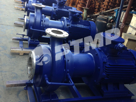 CQB型磁力驅(qū)動泵(簡稱磁力泵),通常由電動機,磁力偶合器和耐腐蝕離心泵組成,其主要特點是利用磁力偶合器傳遞動力,完全無泄露,當(dāng)電動機帶動磁力偶合器和外磁鋼旋轉(zhuǎn)時,磁力線穿過間隙和隔離套,作用于內(nèi)磁鋼上,使泵轉(zhuǎn)子與電動機同步旋轉(zhuǎn),無機械接觸地傳遞扭矩。在泵軸的動力輸入端,由于液體被封閉在靜止的隔離室內(nèi),沒有動密封因而完全無泄露。泵的過流部件根據(jù)需要可分別采用304、304L、302、321、316、316L、UB6、CD4MCu、鈦合金、鎳基合金等耐腐蝕材料。CQB系列磁力泵是全國聯(lián)合設(shè)計組開發(fā)的新型完全無泄露耐腐蝕泵,其技術(shù)經(jīng)濟指標(biāo)與國外同類產(chǎn)品八十年代末的水平相當(dāng)。CQB系列磁力泵形式及基本參數(shù)符合TB/T7742-95《小型磁力傳動離心泵》標(biāo)準(zhǔn)要求。